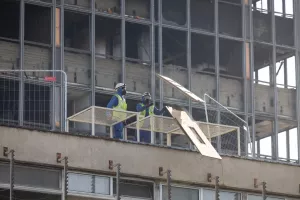 Radnici vinkovačke tvrtke Eurco krenuli su rušiti Vjesnikov neboder, a prva faza radova koja uključuje uklanjanje neposredne opasnosti i stvaranje uvjeta za ponovno otvaranje prometa kroz podvožnjak na Slavonskoj aveniji mora biti dovršena u roku od 30 dana.