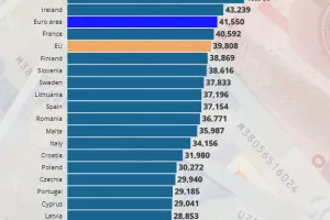 Hrvatska je pak vrlo blizu Češkoj, ali i dalje ispod nje. Češka ima 23.998 eura, Portugal 24.818, a Estonija 26.546. Hrvatska je iznad Latvije 22.262, Poljske 21.246, Rumunjske 21.108 i Slovačke 20.287, dok su dno EU ljestvice Mađarska 18.461, Grčka 17.954 i Bugarska 15.387 eura.