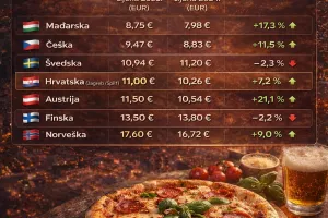 Hrvatska se, pak, u ovoj europskoj analizi našla u nezahvalnoj ulozi negativnog rekordera. Iako nije bila obuhvaćena izvornim foodora izvješćem, službeni podaci Eurostata i lokalne analize cijena na domaćim platformama otkrivaju da smo predvodnik rasta na kontinentu. Dok slovenski susjedi uživaju u nevjerojatnoj stabilnosti s rastom od tek 0,9 posto, u Hrvatskoj su cijene Margharite u gradovima poput Zagreba i Splita stabilno parkirane između 10 i 12 eura. To nas stavlja u zanimljivu poziciju gdje smo skuplji od Mađarske i Češke, ali se cjenovno već opasno približavamo austrijskim gradovima poput Beča (11,90 €), unatoč razlici u kupovnoj moći.